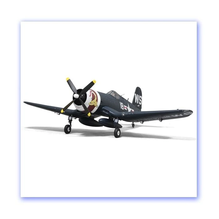 We are proud to announce a faithful recreation of the F4U-4 in 1100mm wingspan form- complete with a realistic 4-bladed propeller, removable auxiliary fuel tanks, tail-hook, functional flaps, retractable landing gear and LED light kit. Power comes from a 3536-850 KV motor with a 40A ESC, giving swift ample power when needed.