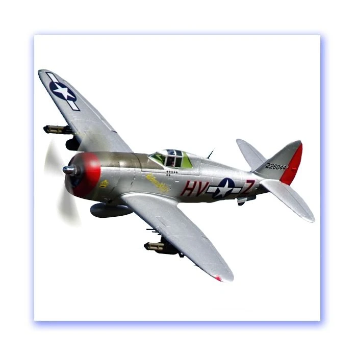 The Republic P-47 Thunderbolt was a World War II era fighter aircraft that served with the United States Army Air Forces. Weighing in at eight tonnes when fully loaded, it was one of the heaviest fighters and ground attack aircraft of its era. Carrying M8 rocket pods and a 2500lb payload of bombs, it was highly effective in ground attack missions. Arrows Hobby is proud to introduce the intricately detailed 980mm P-47. Featuring retractable landing gear, a realistic four bladed propeller, removable auxiliary fuel tank, bombs and rocket pods- the P-47 faithfully replicates its full-sized World War II counterpart.