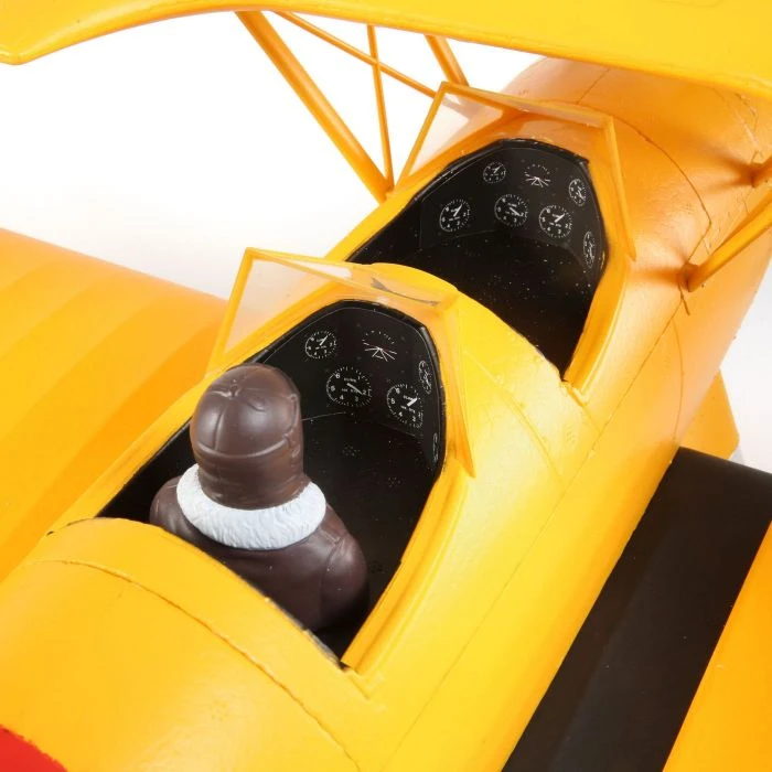 Impressive scale details like an intricately molded dummy radial engine and functional detail like the shock absorbing landing gear make this PT-17 look as good as it performs. In addition, the steerable tailwheel is located in the scale position and a pilot figure sits in the solo cockpit.