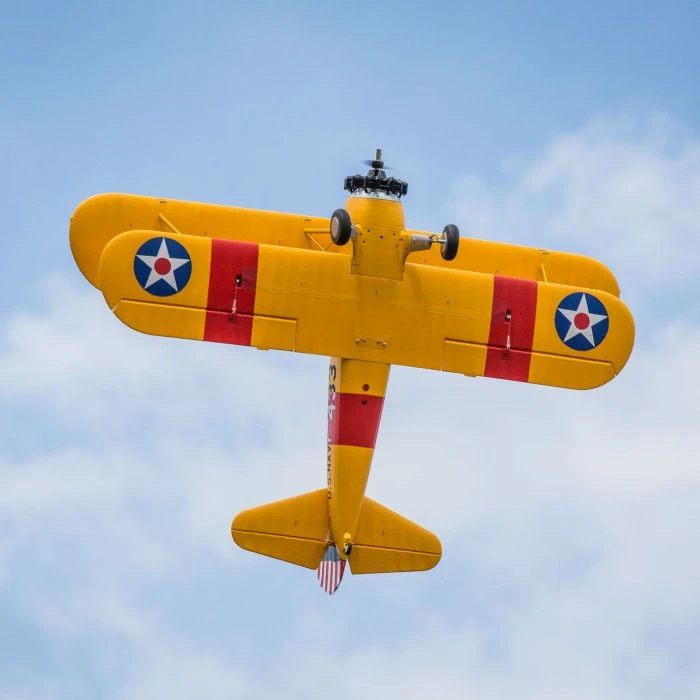 The vivid yellow trim scheme was inspired by the initial aircraft delivered to the U.S. Navy around 1942. Designated the N2S, it was identical to the PT-17 flown by the U.S. Army. Construction with durable EPO material makes it possible to replicate complex detail in a lightweight form. The result is an outstanding scale appearance that’s easy to maintain and allows the most satisfying flight experience possible to shine through.