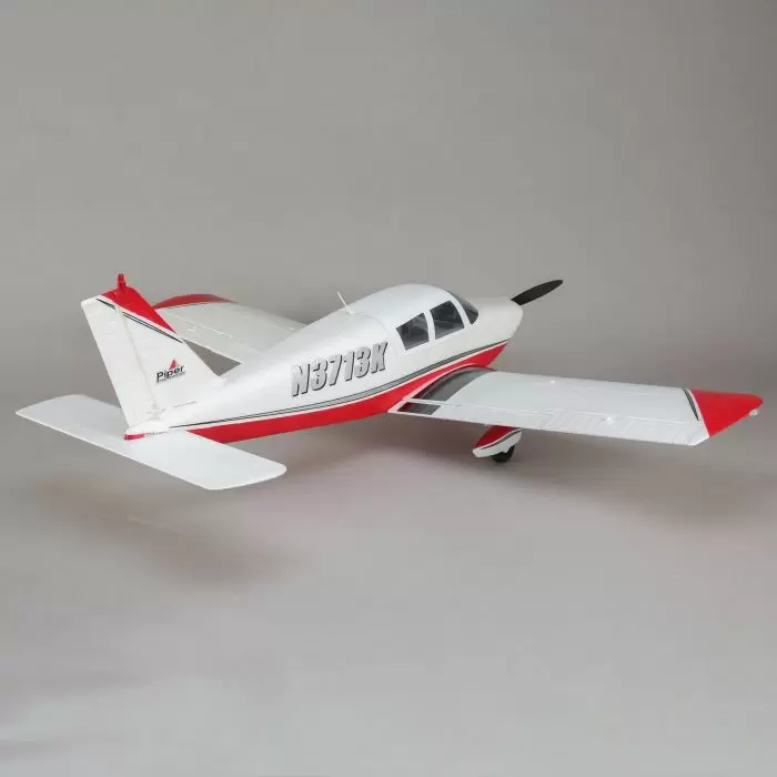 The revolutionary PA-28 Cherokee began rolling off a brand-new Vero Beach, Florida assembly line in the early 1960s. Its simple design and smooth handling made it a popular light aircraft for successful flight training and personal use. Since then, over 32,000 Cherokees and variants have been built making it the fourth-most-produced airplane in the world. The E-flite® Cherokee 1.3m scale model is a tribute to the general aviation classic that features realistic scale details including functional navigation lights, flaps, a full-flying stabilator and more, plus 3S and 4S LiPo compatibility and incredible handling any RC pilot can appreciate.The E-flite® Cherokee 1.3m scale model celebrates the classic design of the legendary full-scale PA-28 with an accurate outline, a long list of scale details, modern-day convenience features, plus fantastic power and flight performance that makes flying fun. An abundance of scale details including panel lines, rivets, corrugated control surfaces, a pilot figure and more highlight the authentic appearance, while functional features including factory-installed LED lights, a shock-absorbing nose strut and large wheels add to the flight experience. The plug-in wing panels are equipped with a convenient hands-free servo connection system and include operational slotted flaps for shorter take offs and landings, plus improved slow-flight handling. No glue is required for assembly of the lightweight, carbon-fibre reinforced EPO airframe so you can be flying in less time than it takes to charge a battery. An extremely large top hatch offers easy access to the electronics and the battery mounting area with plenty of space to fit a 3S or 4S 2200-3200mAh battery, while the high-power brushless motor and 50-amp ESC deliver better-than-scale power. It all adds up to a scale marvel that delivers incredible handling and fantastic flight performance for shooting smooth touch and goes, rock-solid low and high speed cruising, and even for performing aerobatics-all in a single model that you’ll be proud to own.