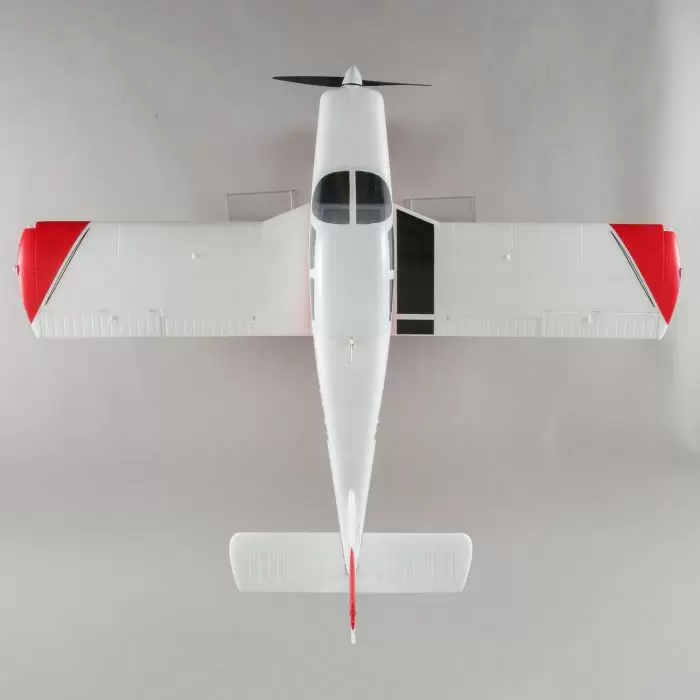 An accurate scale outline captures the iconic shape of the Cherokee including the constant chord wing that’s equipped with operational slotted flaps to deliver improved low-speed handling, shorter take offs and slower landings. The unique full-flying stabilator offers authentic pitch control while the functional shock-absorbing nose strut and large wheels make it possible to fly from a wide variety of surfaces. And factory-installed LED lighting, including navigation lights, strobes on the wing tips, a tail beacon and landing lights, add to the realism and authenticity.