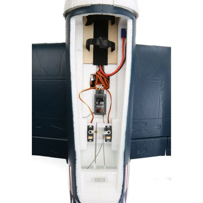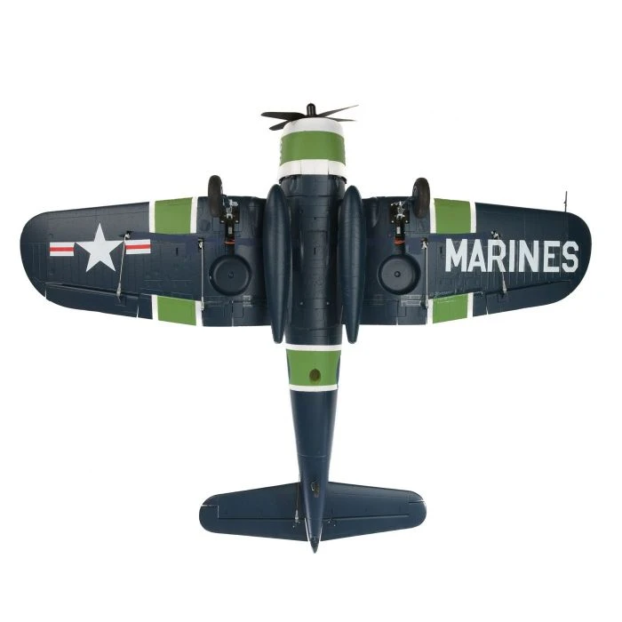 The E-flite® F-4U-4 Corsair 1.2m is a full-house park flyer that flies as good as it looks. A big four-blade propeller, functional three-panel flaps, electric 90-degree rotating retracts and muscular outlines are just the highlights of its authentic feature list. Construction with Z-Foam™ material keeps the overall weight low and delivers a level of airframe durability that’s ideal for everyday flying. But the exclusive feature that makes this definitive warbird the choice for your everyday flying is AS3X technology. That’s because the compact Spektrum AR636A DSMX receiver installed features an AS3X system that’s specially tuned to give you rock-solid flight performance similar to the experience you’d have with an expertly set up model many more times its size. Whether you’re an intermediate or advanced pilot, this Corsair is a sure to help you enjoy what flying a one-of-a-kind warbird is all about.