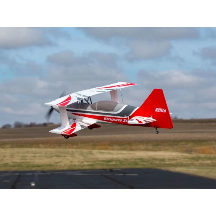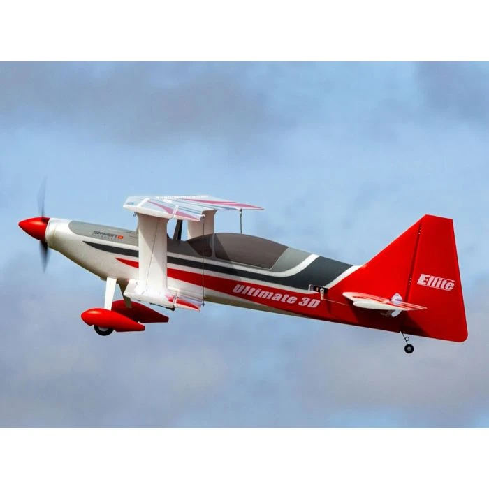 Equipped with the latest modern-day innovations and upgrades, the E-fliteยฎ Ultimate 3D biplane raises the bar for scale, sport and precision aerobatic flying โ plus all-out 3D performance too! Stronger, faster metal-geared servos and ball-link equipped linkages deliver positive, precise control while the beveled hinge lines make it possible for the control surfaces to deflect to high angles for extreme 3D capabilities. The new power system, with a specially-tuned motor and prop, is compatible with 3S AND with 4S batteries to deliver extra power and unlimited vertical capability โ no modifications required. It also features exclusive Smart Technology via the Spektrumโข Avianโข 60-amp Smart ESC, and the BNFยฎ Basic version is equipped with an AR637TA receiver that offers full-range telemetry including real-time battery voltage, current, temperature and more to compatible transmitters. Plus, with 7+ channel transmitters, the optional-use motor reversing function adds special ground handling and other unique capabilities. The composite-reinforced, hollow-core EPO construction provides a lightweight but durable airframe that’s factory-finished in a striking, ready-to-admire trim scheme. Best of all you can have the Ultimate 3D flight-ready in less time than it takes to charge a battery because no glue is required for final assembly, and installation/removal of the wings is tool-free for easy storage and transport. This makes it the easiest and best choice for almost any pilot looking for their first or next biplane!