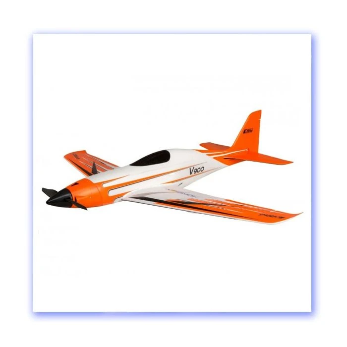 If you have a need for speed-adrenalin pumping, righteous SPEED-then you’re going to love the E-flite® V900 airplane. The factory-installed high-power brushless motor and 60-amp ESC deliver unlimited vertical performance and incredible top speeds up to 120+ MPH without the need for upgrades or modifications. The lightweight yet stiff and durable airframe is equipped with digital, metal-geared servos to offer precision and reliability you’ll appreciate flight after flight. No glue is required for assembly, and you can be flying in just the time it takes to charge a battery. So whether you’re an intermediate pilot and this is your first high-speed airplane, or you’re an experienced speed addict, you can be in the air and flying FAST in almost no time at all. But the V900 airplane doesn’t just fly fast-it’s well-behaved and slows down nicely for smooth approaches and landings, plus it’s capable of aerobatics including huge loops, rolls, knife edge and more.
