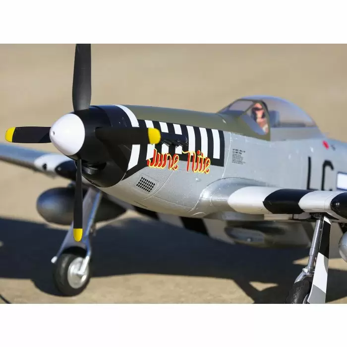 The E-flite P-51D Mustang 1.2m airplane delivers outstanding warbird appeal with operational flaps, retracts and 3-4S LiPo compatibility plus optional SAFEยฎ Select flight protection that makes history’s most famous fighter easier than ever to enjoy.