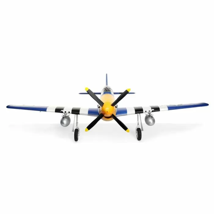 The Truman Senate War Investigating Committee called the North American Aviation P-51 Mustang โthe most aerodynamically perfect pursuit plane in existence.โ During WWII, it blasted trains, ships, and enemy installations throughout Western Europe. The โDโ variant, outfitted with the legendary Merlin engine, gave the U.S. Army Air Forces a high-altitude, long-range fighter capable of escorting heavy bomber formations the entire way to Berlin and back. The E-fliteยฎ P-51D Mustang 1.5m also goes the distance โ to reproduce the famous fighter with exceptional detail, handling, performance and presence. Itโs packed with Extra Scale details and functional features including LED lights, sequenced main and tailwheel gear doors, flaps and much more, and is also equipped with a Spektrumโข Avianโข Smart ESC to deliver an unmatched warbird flying experience.