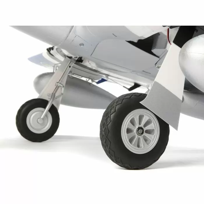 The P-51D Mustang 1.5m is the largest, most detailed and best performing replica of the legendary fighter from E-fliteยฎ yet! Along with an accurate outline, it also features an abundance of Extra Scale details including molded in panel lines and hatches, guns and removable drop tanks, plus a striking factory-applied โLou IVโ finish. Functional Extra Scale features include LED navigation lights, sequenced main and tailwheel gear doors, flaps and more. The shock-absorbing struts feature ball-bearing equipped wheels with diamond tread tires for added scale appearance and make it possible to fly from a variety of surfaces including grass, and reliable electric retracts operate the main gear and tailwheel. And at the heart of it all is a factory-installed brushless motor thatโs compatible with 6S LiPo powerโsimply drop in a 6S 3200-7000mAh battery to achieve level flight speeds in excess of 80+ MPH and unlimited vertical performance! Both versions include a 100-amp Spektrumโข Avianโข Smart ESC, and the BNFยฎ Basic version is also equipped with an AR637TA receiver that offers full-range telemetry including real-time battery voltage, current, temperature and more to compatible transmitters, plus the advantages of exclusive AS3Xยฎ and SAFEยฎ Select technologies to make this one of the easiest to fly Mustangs ever. The unique 3-piece wing design makes transport and storage as convenient as possible because the center section includes the main gear and the outer panels simply snap into place securely without requiring fasteners. Itโs also quick and easy to assemble because the factory-finished EPO airframe bolts togetherโno glue requiredโin less time than it takes to charge a battery. And it all adds up to deliver a warbird flying experience unlike any other with the mightiest Mustang yet!