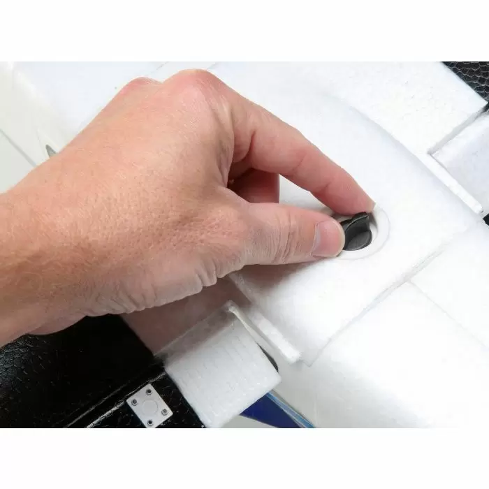 The realistic-looking LED landing and navigation lights are factory-installed and powered from the flight battery. Operational flaps offer improved slow-flight capability and performance while also making it possible to take off and land in shorter distances and at slower speeds.