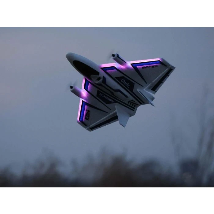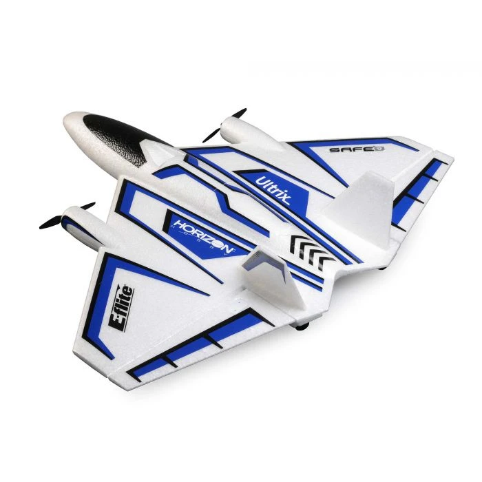 The Ultrixโข 600mm is a smooth handling, extremely versatile delta wing aircraft with aerobatic and 3D capabilities you’d never expect based on its looks alone. Twin brushless motors deliver an incredible power-to-weight ratio that offers good speed, plenty of power to hover, and unlimited vertical performance. Differential thrust adds the ability to perform harriers, flat spins, and more amazing aerobatics. And extremely durable EPP construction makes it one of the toughest E-fliteยฎ models ever! An enlarged version of the popular UMXโข Ultrix, the Ultrix 600mm is easier to see and handles windy conditions even better, aided by exclusive AS3Xยฎ technology that works behind the scenes to smooth out the effects of wind and turbulence to deliver a locked-in feel. Optional-use SAFEยฎ Select technology makes it easy even for low-time pilots to fly successfully in large yards, parks, sports fields, RC flying, and other fields. The included optional-use fixed nose wheel makes it possible to taxi, takeoff, and land on smooth surfaces. Or you can leave the nose wheel off for more speed and vertical performance plus easy hand launches over and landings on grass. Fully factory-assembled, the Ultrix 600mm is ready to fly within minutes of opening the box. Just add a 3S 800โ850+mAh battery and bind it to a compatible Spektrumโข DSMXยฎ/DSM2ยฎ equipped transmitter. It even delivers a variety of real-time power system related telemetry data โ including battery voltage, current, and more โ to compatible transmitters. You can also install the optional LED light kit (sold separately) for improved visibility during daylight conditions and to fly at night!