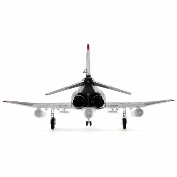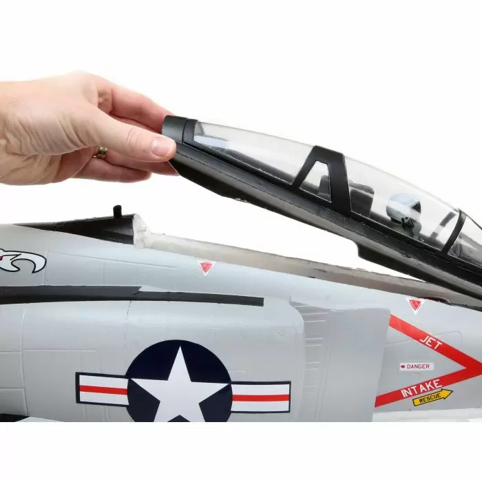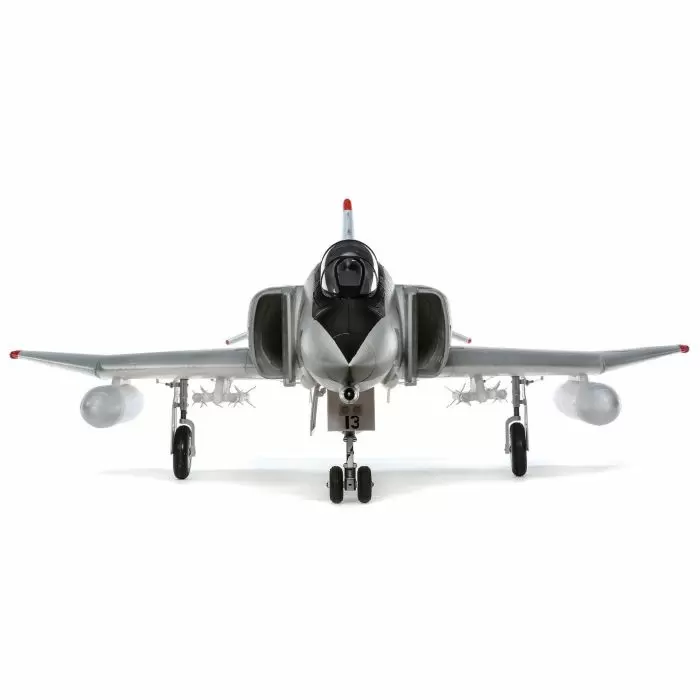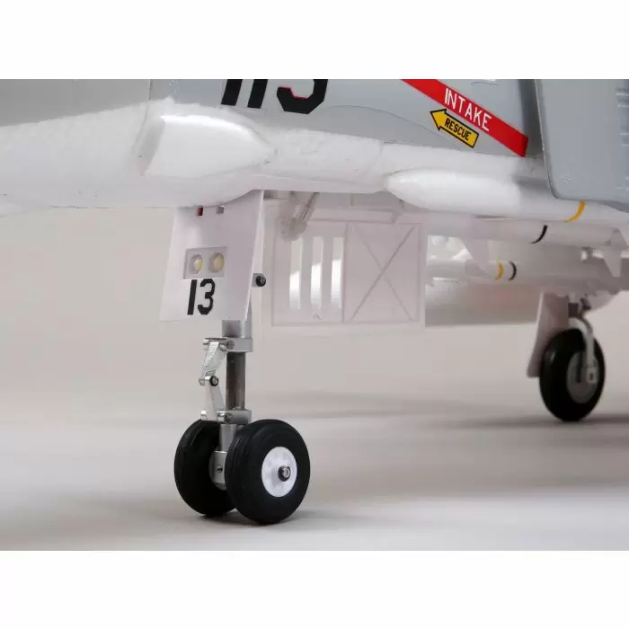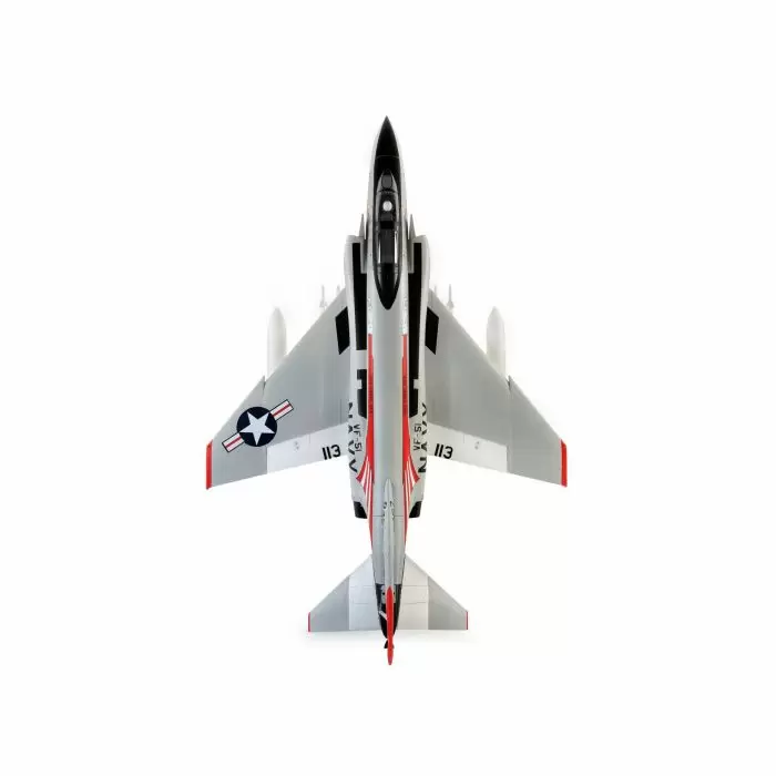 The E-flite® F-4 Phantom II 80mm EDF is a replica of the awe-inspiring supersonic interceptor and fighter-bomber legend. It features an accurate outline and an abundance of Extra Scale details including moulded-in panel lines and hatches, main gear strut covers, removable ordnance and tanks, plus a factory-applied finish that pays tribute to the VF-51 “Screaming Eagles” squadron. Functional Extra Scale features include LED landing and navigation lights, full-flying stabs, operational flaps and control surfaces with pocket hinges, sequenced nose gear doors and electric retracts with shock-absorbing struts so you can fly off a variety of surfaces, including grass fields. The 6S-compatible brushless inrunner motor and 100-amp ESC are perfectly matched to an 80mm 12-blade fan to deliver incredible thrust and speed, plus a turbine-like sound. It’s also the easiest to assemble Phantom ever with a factory-finished EPO airframe that bolts together- no glue required- in less time than it takes to charge a battery. And it all adds up to deliver a unique flight experience with the best handling and performing F-4 model yet!