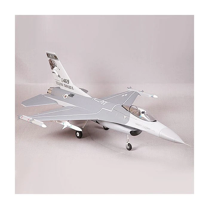 The FMS 70 mm F-16 adopts a scale USAF camouflage. With five different decals and pin-up sticker set ups, you build and customize you own plane.