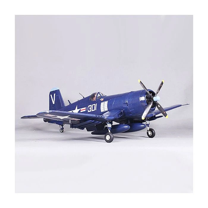 The FMS F4U-4 Corsair is a remarkably scale tribute to this warbird icon that’s a blast to fly. Sporting a pair of 90 degree rotating retractable landing gear, fully functional split flaps, and it ‘s powerful motor turning a scale like 4 bladed 14X8 prop, gives you all you need for slow gentle landings to high-speed strafing runs and spirited sport aerobatics.