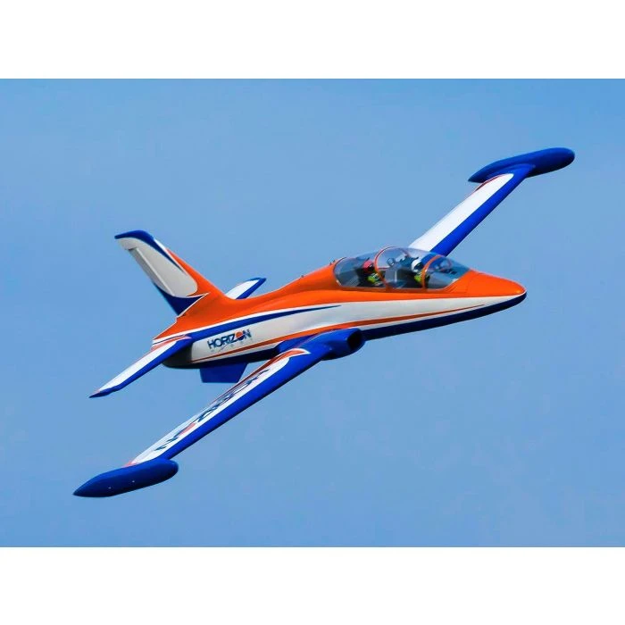 The first Hangar 9 turbine jet is a perfect way for experienced pilots to move into turbine-powered models. It’s also ideal for seasoned jet pilots looking for great value in a well-behaved platform with excellent performance and handling. The full-scale Aermacchi MB-339 was designed and manufactured in the 1970’s by Alenia Aermacchi SpA as a military jet trainer and light attack aircraft. This ARF version has been developed to meet the need for an attractive, easy to fly yet fully aerobatic jet model suitable for 60-85N size turbines. With this first-of-its-kind turbine powered jet model completion level, first time jet pilots get performance and flight versatility with low assembly time. Designed to be an attractive, easy to fly yet fully aerobatic jet, it features lightweight, balsa and plywood construction with carbon fiber reinforcements and is finished in genuine UltraCote® film that’s long lasting and easy to maintain. Designer and world-class pilot Ali Machinchy created the MB-339 with the right combination of attention to details and flight characteristics that Hangar 9 pilots expect. The Hangar 9 Aermacchi MB-339 60-85N Turbine 84″ ARF model delivers an incredible in-flight experience with amazing durability.
