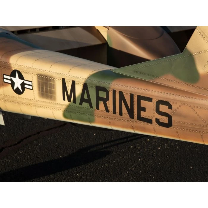 This OV-10 Bronco features impressive details including finely detailed satin-finish printed covering with panel lines, rivets, and weathering, a painted pilot figure, and 3D instrument panel. There are six ready to fit operational gear doors. Plus, removable cannons, scale sidewinder missiles with detachable wing pylons, and a center line external fuel tank with detachable mount.