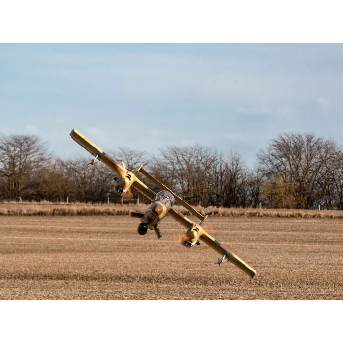 For the giant-scale warbird enthusiast and experienced pilot, the new Hangar 9® OV-10 Bronco is our largest giant-scale warbird to date. It features many scale details and the incredible flight performance Hangar 9 customers expect. As a unique subject, the OV-10 Bronco features many scale details such as highly detailed satin-finish printed covering and ultra-scale accessories including pilot, cockpit details and sidewinder missiles. The fully painted fibreglass cowlings feature added weathering for scale realism. Featuring a 108-inch wingspan, this model represents giant scale flying, yet is practical enough to fly every day. The three-piece plug-in wing with center section landing gear support allows for easy transportation and field assembly. Designed to accept 30 – 35cc petrol engines as well as electric power, the complete hardware kit is included and makes mounting the power system quick and easy. Like the full-size warbird, the scale undercarriage legs are sprung for shock absorption and made from high grade aluminium, taking most of the bounce out of tough terrain. Available separately, the required electric retract set with shock-absorbing scale struts provides additional scale realism. The Hangar 9 OV-10 30cc is a matchless model delivering the flight experience of a versatile twin-engine aircraft.