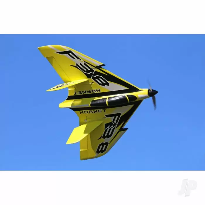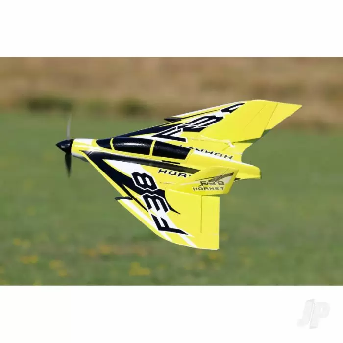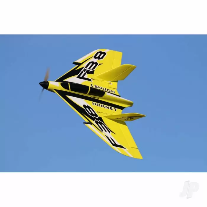 Looking for fast and furious R/C fun? Then you’ve come to the right place. Buckle up, tuck this tantalising F38 under your arm and prepare for a 3S-fuelled thrill that’ll have your clubmates rushing to buy their own. Make sure they get a different colour and enjoy triple the excitement as you go head-to-head in a bout of brute, brushless pylon racing. Packing a powerful pre-fitted 1200KV brushless motor, 30A ESC and supremely capable twin 9g servos, just 30 short minutes is all it takes to get this 3-channel PNP foamie airborne, and 30 seconds to get hooked! Docile, dead easy to launch and furiously fast, the JP F38 Hornet is the perfect all-weather grab ‘n’ go racer. Suitable for any occasion and almost any field, it’s a keeper.