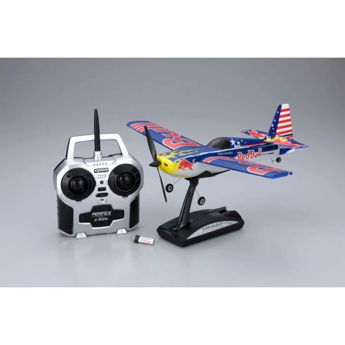 The most amazing micro R/C airplane the world has ever seen now flies even higher with its fusion of light weight and maneuverability. Able to fly in stronger breezes than before, the sharp flight of the new MINIUM can also be enjoyed outdoors. Its secret lies in the fuselage designed for slow flight and the change from a cambered wing to a flat bottom main wing with ailerons that deliver greater speed and maneuverability. Also, the 6mm coreless motor has been replaced with a high-power 8mm version that drives the new specification gear unit and propeller. Combined with the special Li-Po battery included, the MINIUM EDGE 540 realizes its more powerful and dynamic flight capability with the ailerons allowing control around the roll axis. This fully pre-assembled model is loaded with an ultra-small control unit with built-in amp, receiver and two linear stroke servos and has all the linkages pre-set. The 3-channel system provides elevator, aileron and motor control for the full scope of flying experiences. Control is managed on the worldwide standard ISM band 2.4GHz frequency with a system that automatically scans for clear frequencies to use. Simply switch the power ON and the system automatically scans a 79 wave spectrum for a free band to secure a radio signal free of interference. Even expert level fliers will be amazed at the flight performance and maneuverability of the palm-top sized MINIUM EDGE 540.