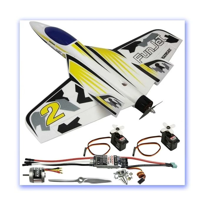 Making something good even better is always a challenge. The FunJet is already one of the best pusher Jets on the market. Multiplex have gone one step further with the optimized FunJet 2 The canopy shape and the new, high-quality design make the model even more attractive. The speed with the components recommended multiplex is around 99mph The enormous speed and the excellent slow flight and landing characteristics distinguish this model particularly, since it can always be flown precisely. The big difference to its faster brother, the FunJet ULTRA 2, is the lower weight and the very easy hand launch.