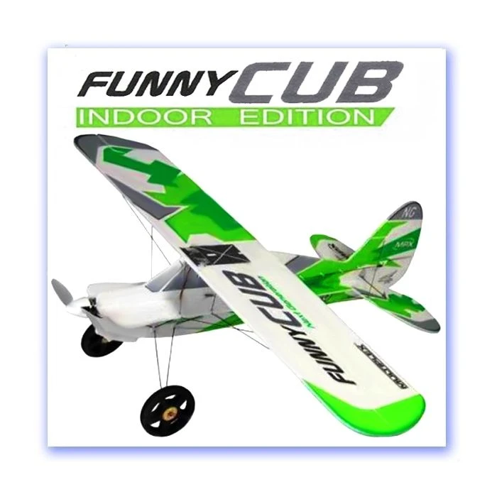 The MULTIPLEX Funny Cub is a fantastic new indoor model With its large wheels and sprung undercarriage it can, like its big brother the FunCub, take off and land virtually anywhere. It is also possible to lower both flaps for use as airbrakes, which further decreases flight speed and take-off distance. The FunnyCub is therefore a must-have for all bush plane and indoor flying fans, as well as for those who only want to take a casual stroll behind their home.