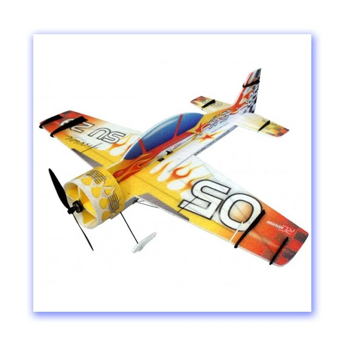 was desinged by David Kyjovsky, to fill his need for a highly capable 3D model with no limits, great roll rate and crisp snap rolls, for use in Aeromusical competitions and high energy “fooling around”. By popular demand of certain hotshot indoor pilots, the aileron size was increased to the practical maximum. The distinctive motor cowl not only makes the plane look more realistic, it also helps smooth the prop airflow and improves knife edge lift characteristics. The plane has a depron predecessor that is a great flyer too, but 6mm EPP structure gives a clear advantage in terms of crash survivability. In our experience, EPP planes typically last 5+ times longer than comparable Depron ones!