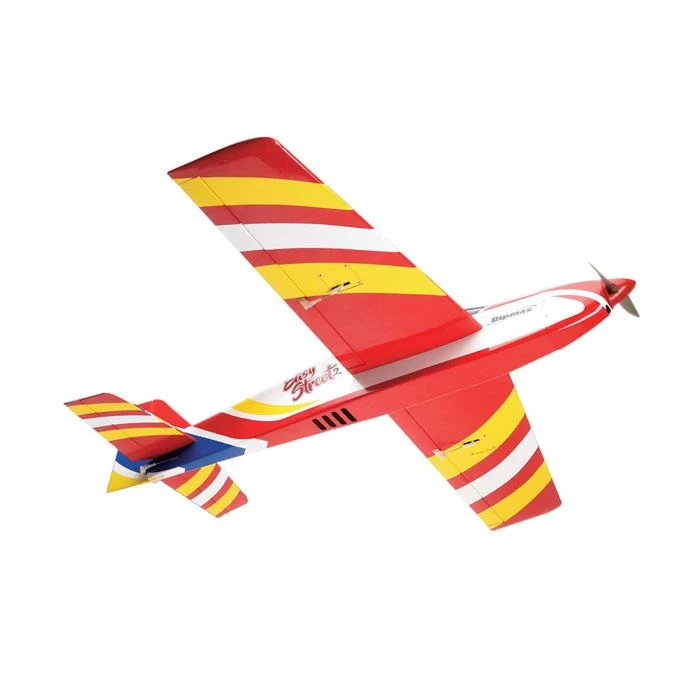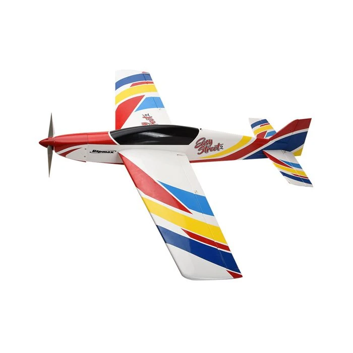 This is the new Ripmax Easy Street 2 it is a stunning sport aerobatic aircraft with the DNA of the classic original Easy Street designed by malcolm corbin in the late 90’s. The Easy Street 2 has a wingspan of 1120mm it is the perfect size for the 3-4S 2100-3000mAh Li-Po batteries that almost every modeller already owns. This practical size enables you to fit the Easy Street 2 into a car fully assembled, but you can remove the wings for easy storage if you want. The sleek design tracks very precisely in flight, with a crisp response from the controls. Using the recommended power pack it can really eat up the sky at speed too!