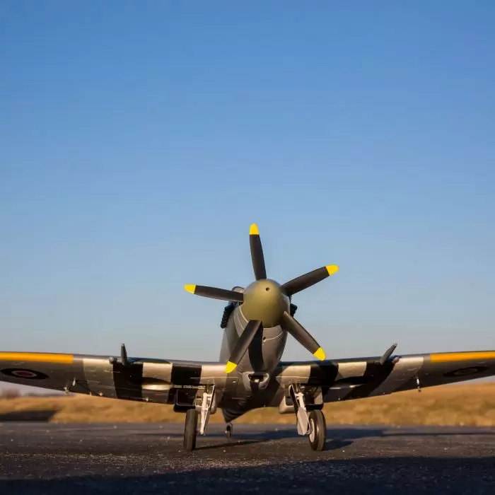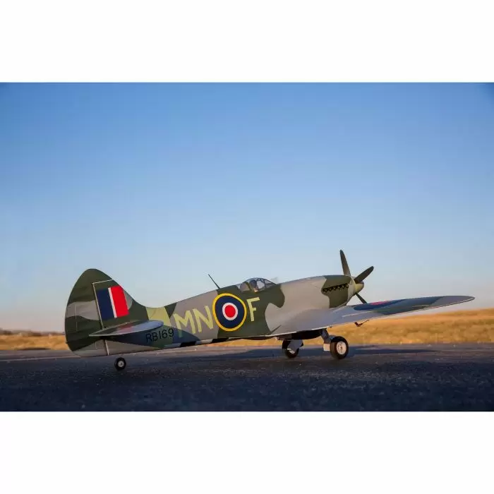 Finally, Great Britain had a fighter that outclassed every weapon its foe could throw at it: the Supermarine Spitfire Mk XIV. Even when menacing rockets and jets attempted to scorch the land, heroic pilots strapped into their Griffon-powered Spits to topple them. The new E-flite® Spitfire Mk XIV 1.2m has been developed to deliver great warbird performance and agility in addition to the distinctive elegance only possible with a Spitfire.