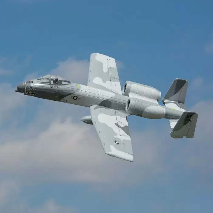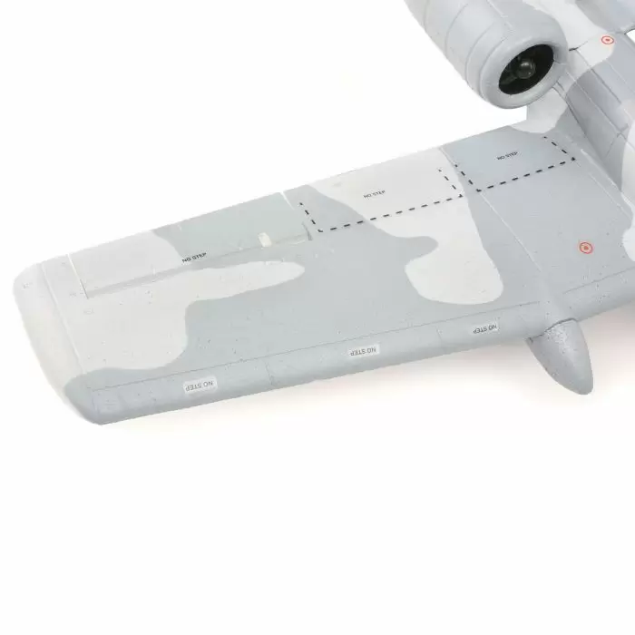 The superb scale outline captures the menace of a full-scale A-10 better than any other RC Warthog this size. The trim scheme and markings are inspired by the rare โFlipperโ camouflage that appeared on some A-10s in the early โ90s. Other scale touches include a clear canopy with pilot figure, nose cannon detail, molded panel lines and more.